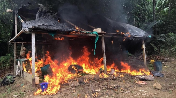 Además se desmantelaron las instalaciones construidas con una estructura de madera y un techo en plástico color negro, un sistema de destilación y una pesa metálica.