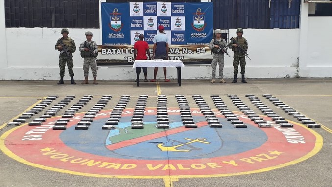 En el desarrollo de una operación conjunta de la Armada de Colombia y el Ejército Nacional, se logró la incautación de 173 kilogramos de clorhidrato de cocaína y la captura de dos sujetos en el departamento del Chocó.