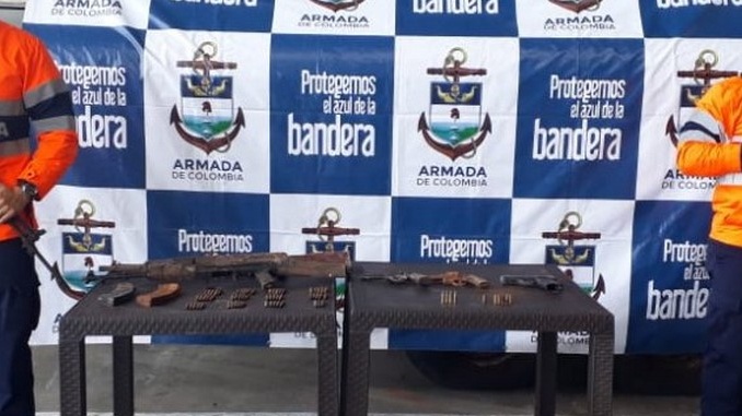 Durante el procedimiento fue incautada la embarcación propulsada por un motor de 75 HP, en su interior fueron hallados 2 fusiles Ak 47, 2 revólveres, 1 pistola, 2 proveedores para fusil y 62 cartuchos de distintos calibres. Este material fue puesto a disposición de las autoridades competentes y no se presentaron capturas.