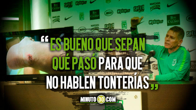 El orientador recurrió a un video, que fue exhibido en la conferencia de prensa, en el que mostró tanto la jugada en la que el atacante salió mal librado, como la herida que presenta, la cual se le lastima cuando el calza los guayos, tanto en los entrenamientos como durante los partidos.
