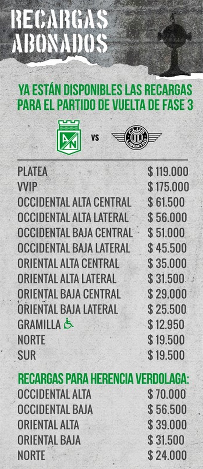 Los precios de las recargas tienen alrededor de un 30% de descuento en relación al precio de la boletería. También puedes recargar los abonos de #HerenciaVerdolaga.