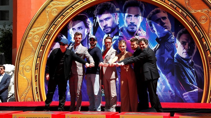Elenco de Avengers: Endgame plasma sus huellas en el Teatro Chino de Hollywood. EFE