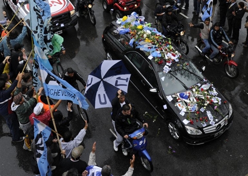 En el vuelo viajan la viuda, la presidenta Cristina Kirchner, miembros de la familia y altos funcionarios del gobierno, que asistirán al sepelio en un cementerio comunal de la ciudad patagónica, que es capital de la provincia de Santa Cruz.