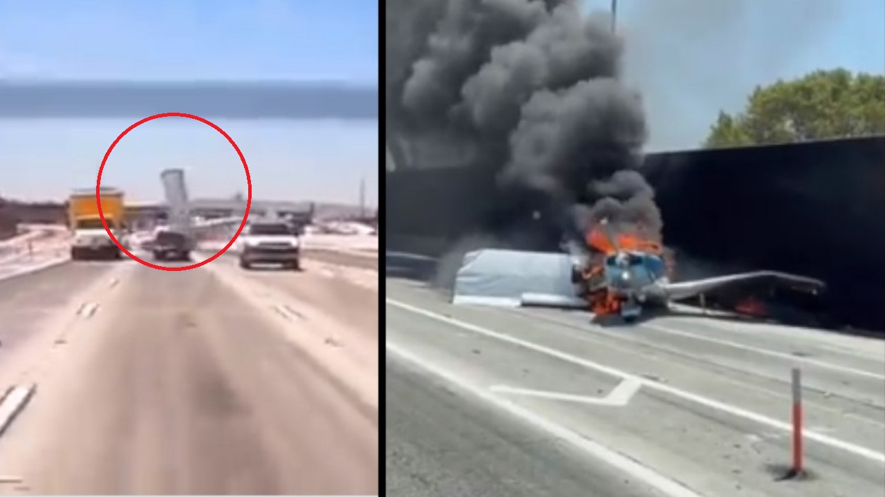 Una avioneta causó caos en una autopista de California, en Estados Unidos, luego de que tuviera que aterrizar de emergencia y en seguida se incendiara.