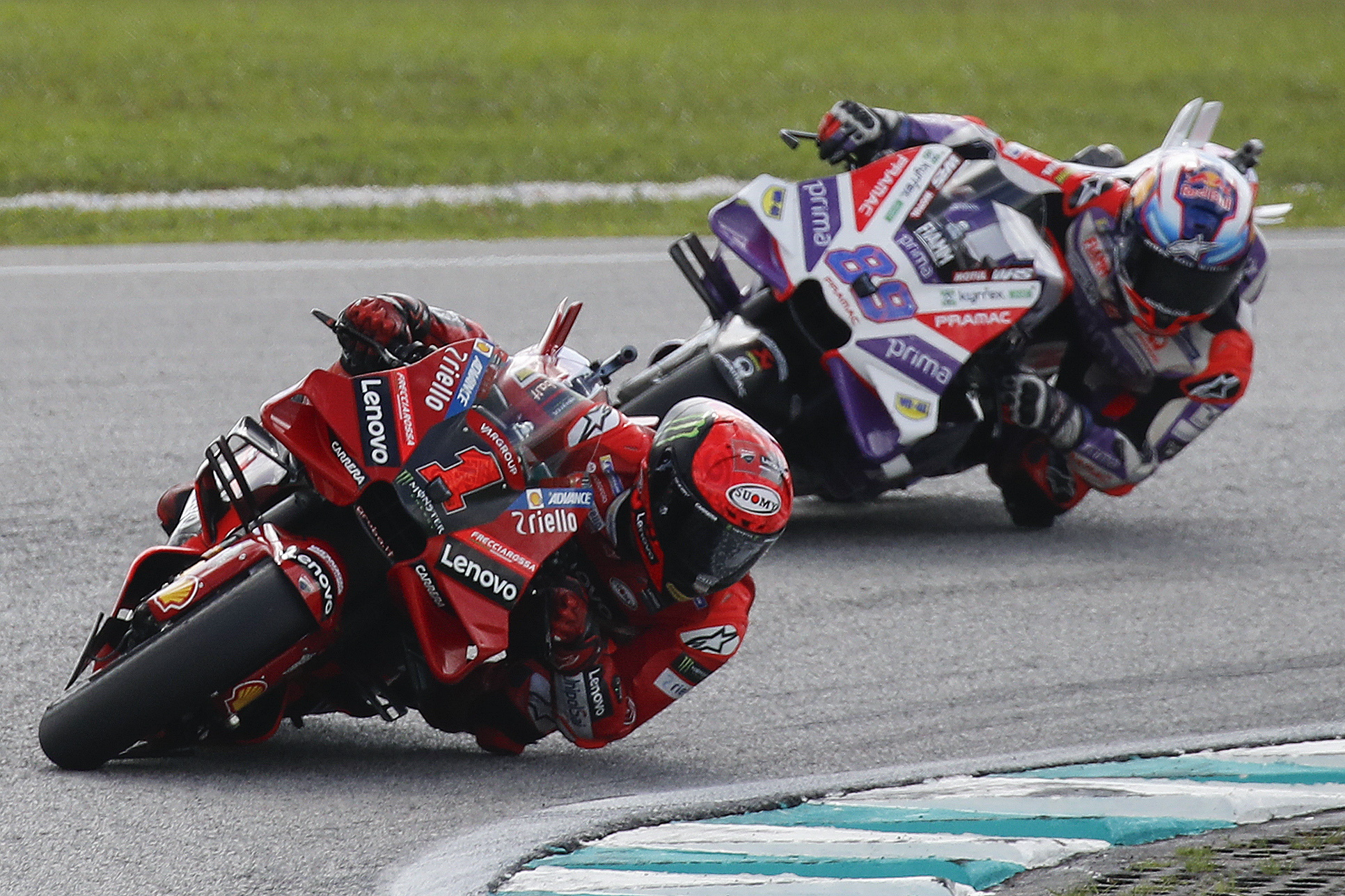 Sepang (Malasia), 13 nov (EFE).- El italiano Francesco "Pecco" Bagnaia (Ducati Desmosedici GP23) le volvió a ganar la "batalla moral" al español Jorge Martín (Ducati Desmosedici GP23) al acabar por delante de él el Gran Premio de Malasia de MotoGP.