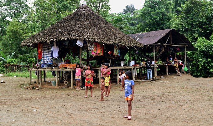Mientras el ecocidio germina, los niños embera siguen jugando con las omnipresentes camisetas de la selección colombiana de fútbol.