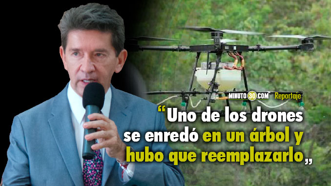 El gobernador de Antioquia, Luis Pérez Gutiérrez, hizo un balance sobre la implementación de erradicación de cultivos ilícitos con drones, de los cuales resaltó dos noticias, una de ellas tiene que ver con el reemplazo de uno de los drones que quedó enredado en un árbol, el cual el mandatario calificó como normal eh un proceso como el que se adelanta en dichos cultivos.