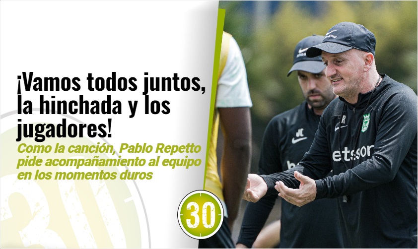 El técnico de Atlético Nacional Pablo Repetto sacó bandera blanca y pidió, como dice una de las canciones de la hinchada que “vamos todos juntos la hinchada y los jugadores”.