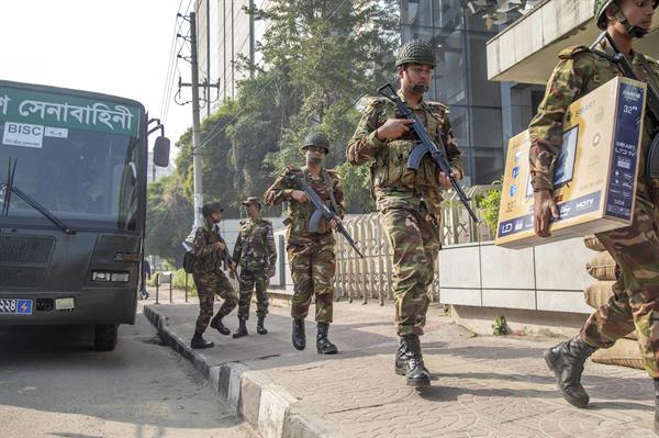 "Los miembros de las Fuerzas Armadas estarán estacionados en puntos nodales y otros lugares convenientes en cada distrito, subdistrito y área metropolitana", informó en un comunicado el Departamento de Relaciones Públicas Interservicios de Bangladesh.