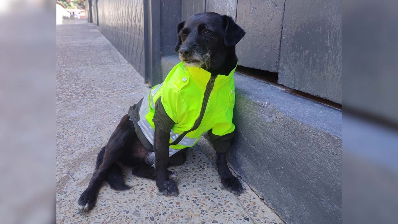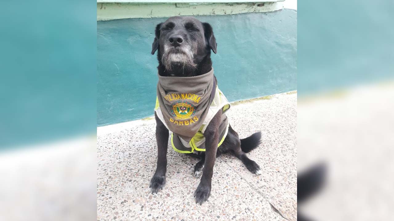 El cariño y la cercanía que ha establecido con los uniformados le han valido el apodo cariñoso de “perrito policía”, luciendo con orgullo el uniforme de la Policía Nacional.