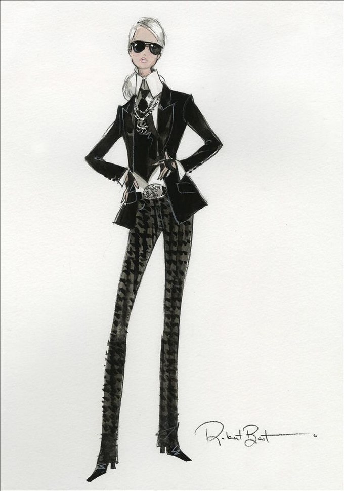 Sin abandonar en lo más mínimo su estilizada y superfemenina silueta, “Barbie Lagerfeld” portará la indumentaria y accesorios característicos del modisto, por supuesto adaptados a sus medidas naturales.