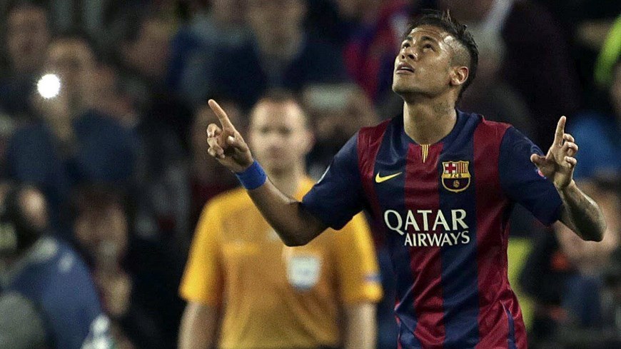 El delantero brasileño del FC Barcelona Neymar Da Silva celebra su segundo gol ante el Paris Saint Germain, durante el partido de vuelta de cuartos de final de la Liga de Campeones que se disputó en el Camp Nou, en Barcelona. EFE