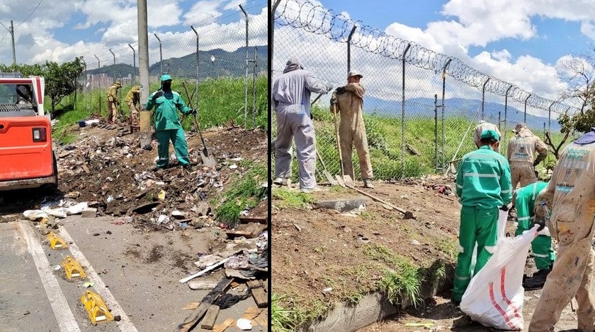 En las últimas horas las autoridades de Medellín se tomaron el sector de la malla del Aeropuerto Olaya Herrera de Medellín para hacer limpieza y recolección de la basura que algunos han tirado en el lugar.