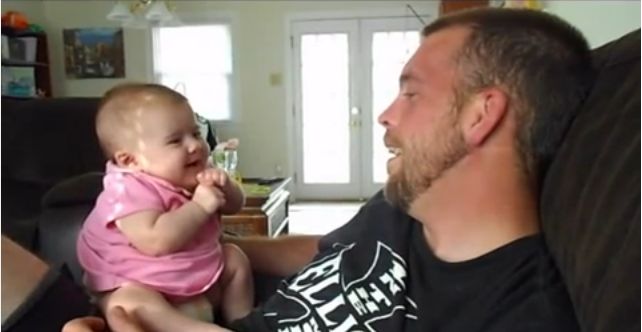 bebe dice te amoEn las imágenes se ve a un hombre cargando a su bebé de dos meses. Él le dice a la pequeña “Te amo” y la menor parece querer imitar a su padre.