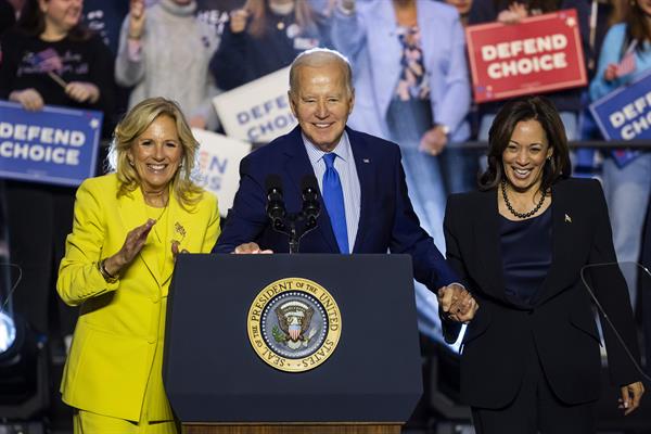 "También necesitamos a los hombres en esta lucha porque la libertad reproductiva nos afecta a todos", apuntó la primera dama ante un público que respondió durante toda la cita con aplausos y proclamas a favor de Biden y Harris.