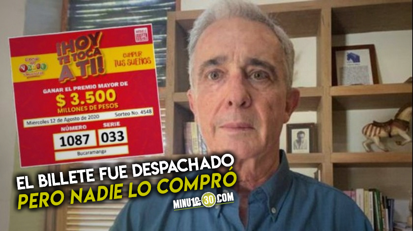 Sobre el tema se detalló que el billete con el número 1087 fue despachado a la ciudad de Bucaramanga, pero nadie lo compró, por lo que se descarta que haya un nuevo millonario en Santander ‘gracias’ al expresidente Uribe.