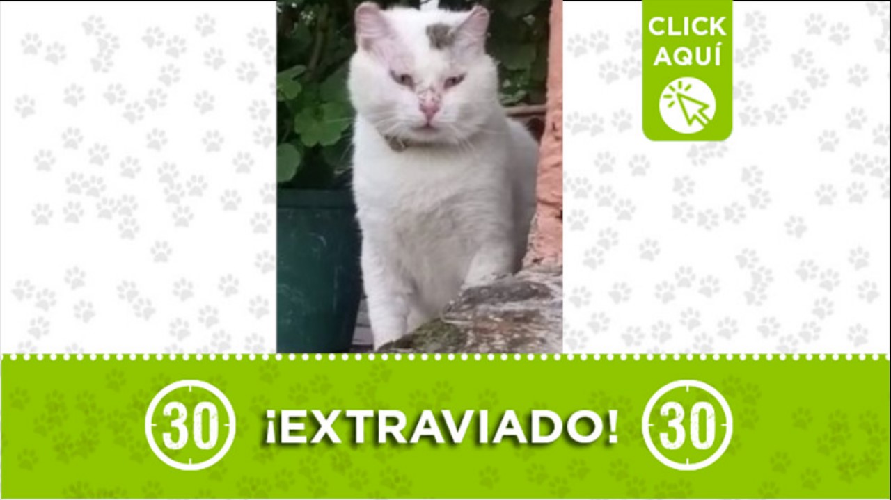 Este gatico llamado “Blanquito” se perdió en Robledo Pajarito, Medellín.