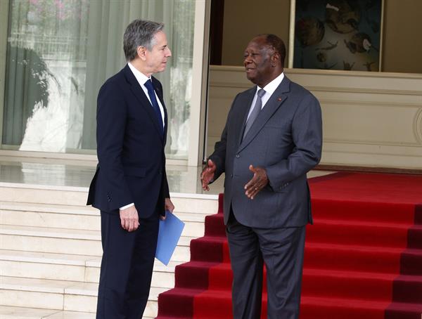 "Con esta nueva inversión, EE.UU. habrá invertido casi 300 millones de dólares en los últimos dos años en asistencia centrada en luchar contra la inestabilidd de la costa del oeste de África", afirmó Blinken en una comparecencia conjunta con el presidente marfileño, Alassane Ouattara.