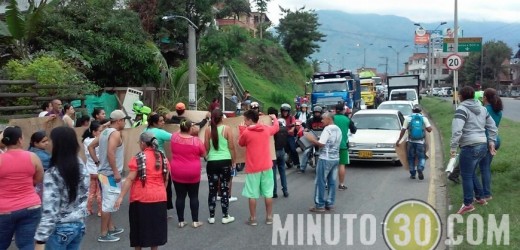 Minuto30.com-. Para exigir que les reintegren el servicio de acueducto diario, varias familias del norte de Medellín bloquearon la vía La Paralela como medio de protesta.