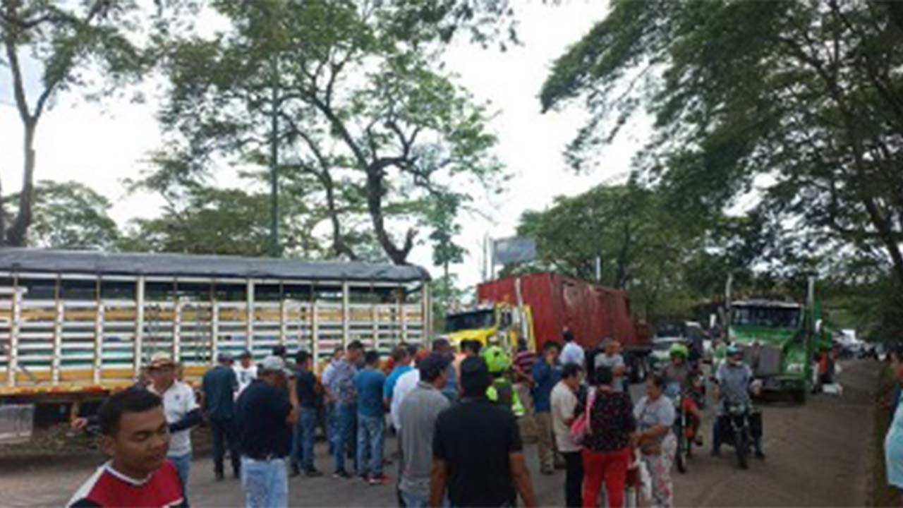El bloqueo se da por el rechazo a la medida de pico y placa para categorías VI y VI, definida por la Resolución del Instituto Nacional de Vías (Invías).