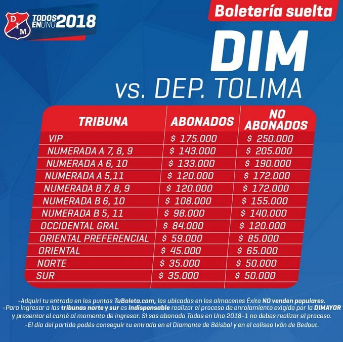 Minuto30.com- Tras certificarse su paso a la semifinal de la Liga Águila I-2018, luego de dejar en el camino a Atlético Junior, Independiente Medellín sacó a la venta la boletería para el partido de vuelta ante Deportes Tolima.