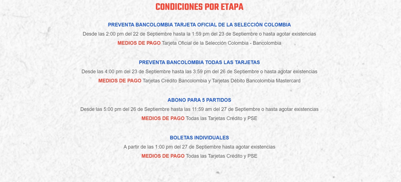 La venta la boletería para partidos de Colombia en las Eliminatorias Sudamericanas Sudamericanas se puso en marcha desde este miércoles 22 de septiembre.