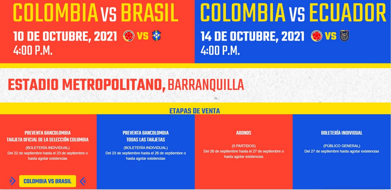Más información  sobre la venta la boletería para partidos de Colombia