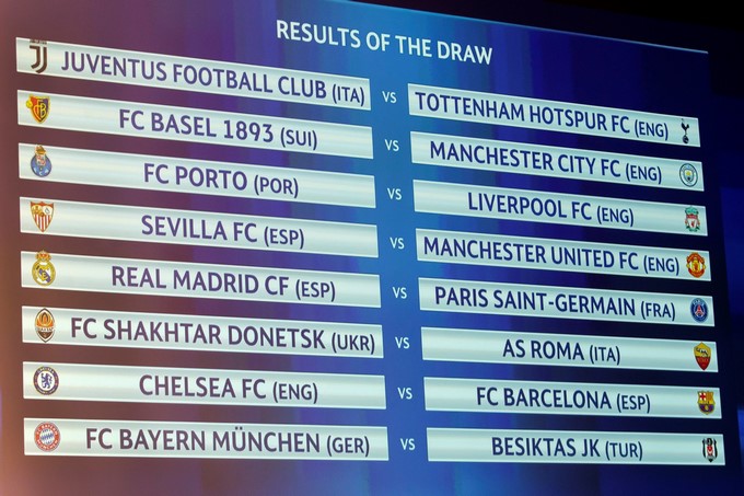 Detalle del resultado del sorteo de la Liga de Campeones celebrado en Nyon (Francia)