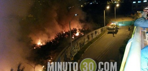 Minuto30.com-. Unidades del Cuerpo de Bomberos de Medellín trabajan para extinguir un incendio que se registra en el barrio Robledo de Medellín.