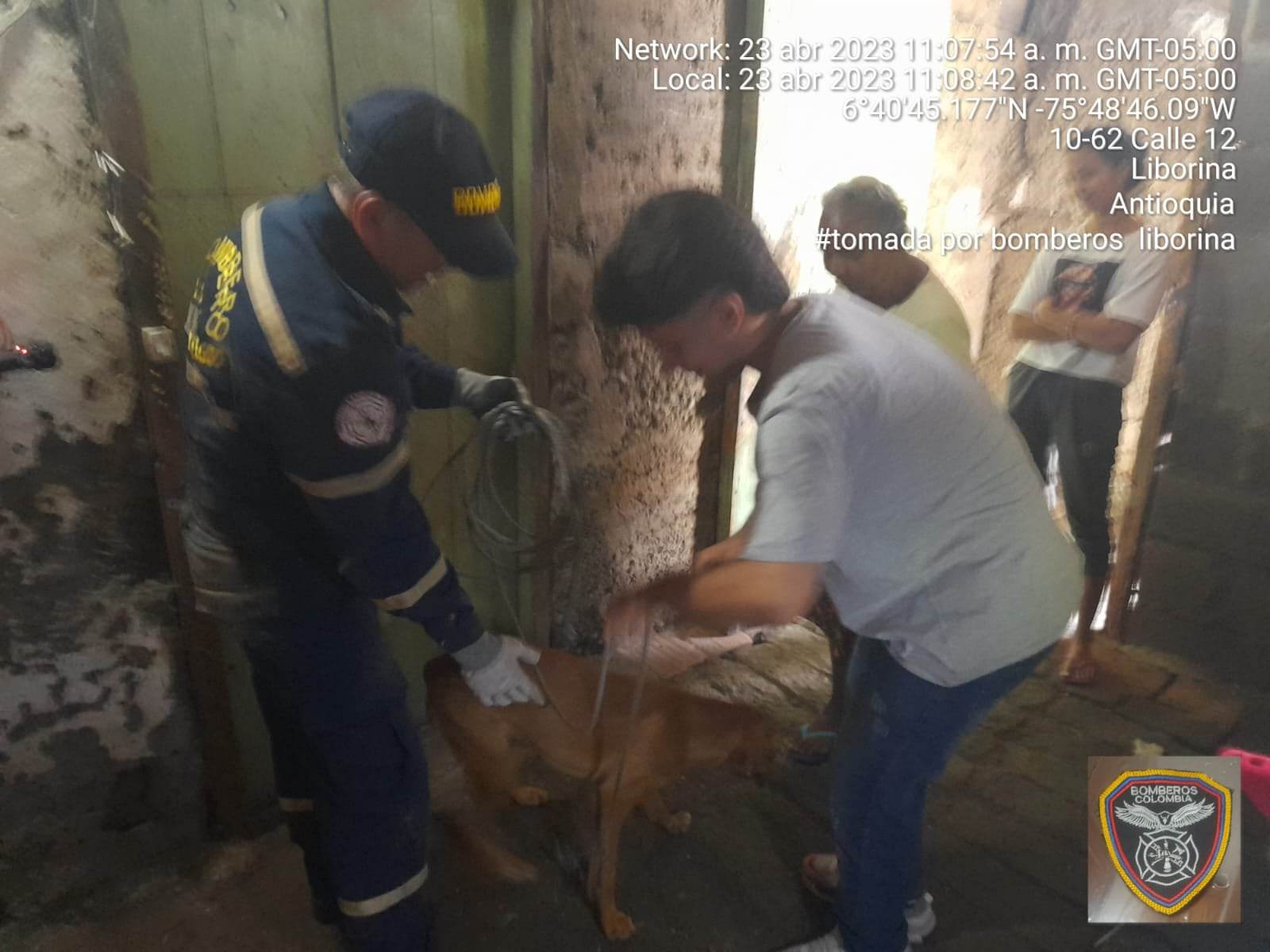Los bomberos tuvieron que dañar algunos adobes de una pared para poder rescatar la mascota que estuvo atrapada desde la noche del sábado. Fue liberada el domingo a las 11: 00 a.m.