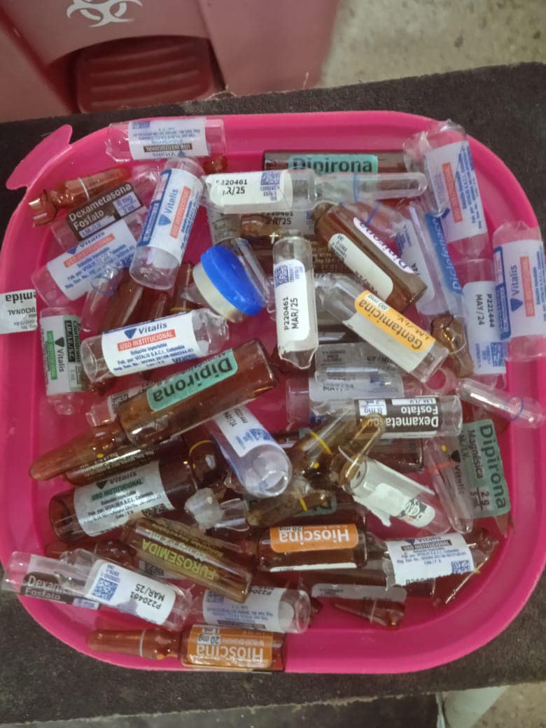 En video quedó registrado cómo quedó el lugar después del bochornoso suceso, habían medicamentos en el piso y otros en pérdida total.