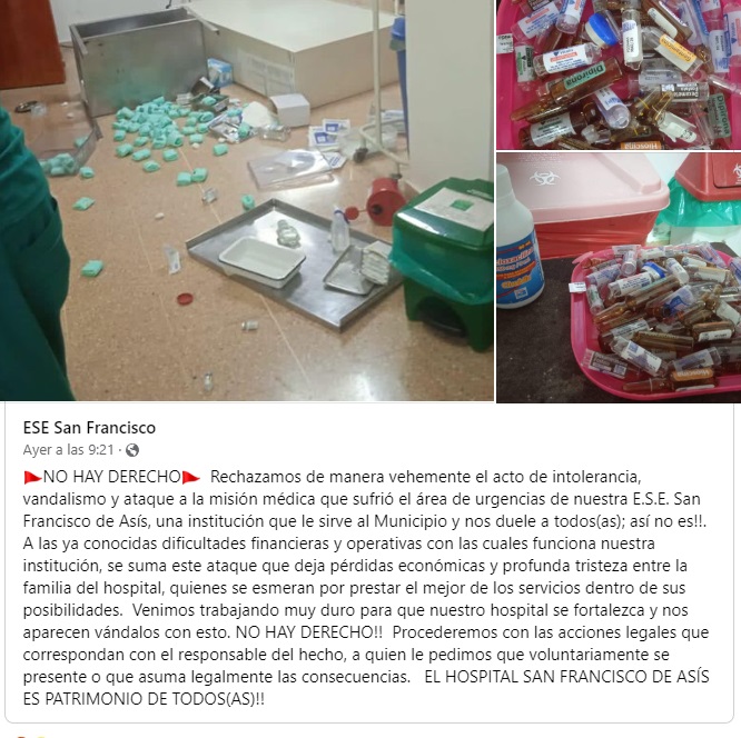 “Se enfureció y empezó a tirar todo acabó prácticamente con todos los medicamentos y varios equipos que teníamos en servicio de urgencias”, dijo la Gerente.