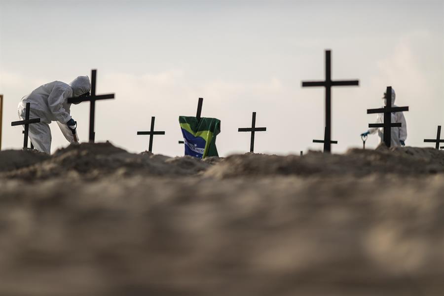 Los números confirman el acelerado ritmo de propagación del COVID-19 en Brasil, el segundo país del mundo con más contagiados, detrás de Estados Unidos, y que se acerca a la segunda posición también en número de muertos, actualmente ocupada por el Reino Unido.