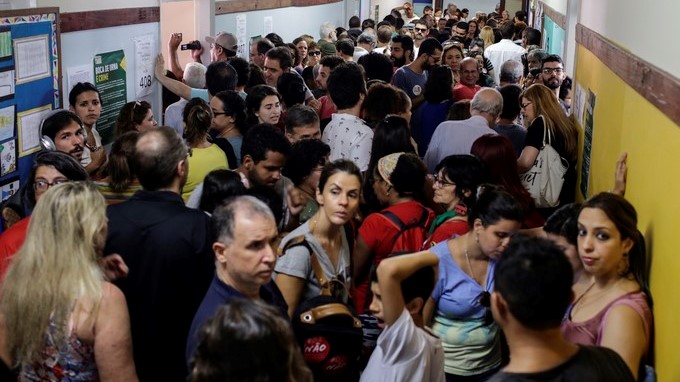 “Mi novia trabaja hoy aquí en el colegio, y en las reuniones previas les informaron que habían reducido las personas que iban a gestionar la jornada electoral”, manifestó Mota quien opinó que estas elecciones desembocarán en una nueva votación en tres semanas, en las que probablemente el ultraderechista Jair Bolsonaro (PSL) y el socialista Fernando Haddad se medirán en un balotaje.