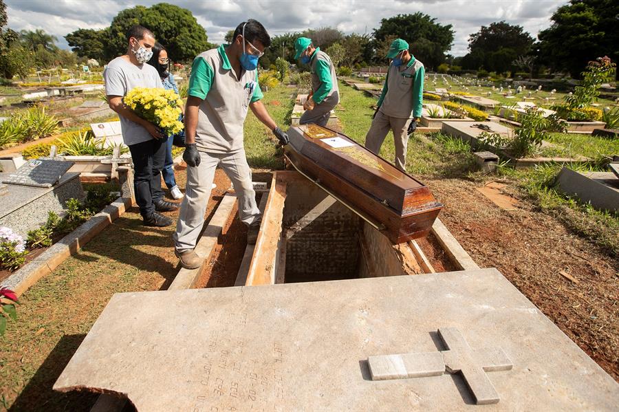 Brasil registró este viernes 1.005 nuevas muertes por COVID-19 en las últimas 24 horas, con lo que completó cuatro días seguidos con más de mil víctimas diarias, en tanto que el total de fallecidos ascendió a 35.026, informaron fuentes oficiales.