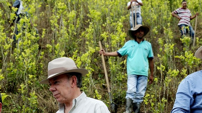 Al sembrar la mata de plátano, Santos comenzó la implementación del Programa Nacional Integral de Sustitución Voluntaria de Cultivos de Uso Ilícito (Pnis) con el que esperan erradicar el próximo año unas 50.000 hectáreas de coca y que busca beneficiar a unas 100.000 familias dedicadas a esta actividad.