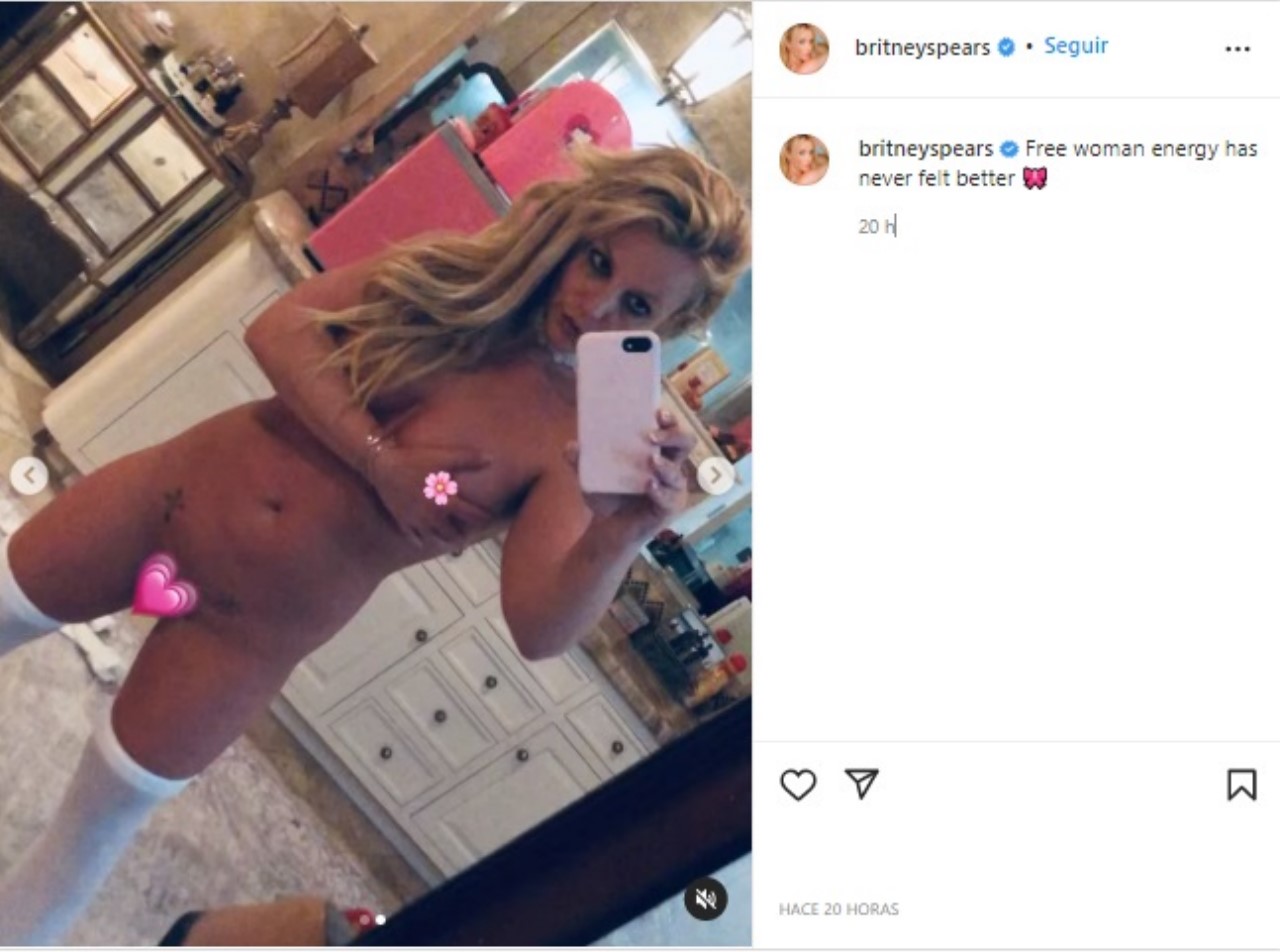La cantante estadounidense Britney Spears posó con la Dios la trajo al mundo. A través de su cuenta de Instagram la artista solo tenía puesto unas medias de color blanco.