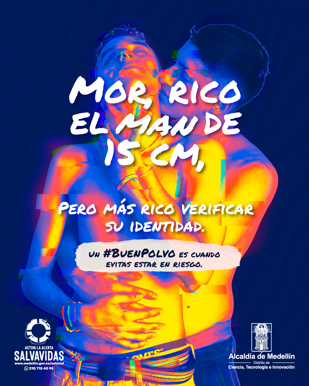 “Un polvo no debería costarnos la vida. Aunque tradicionalmente se nos ha negado esta conversación, las juventudes de Medellín sabemos que tenemos derecho a vivir plenamente nuestra sexualidad en libertad y sin temores. A través de la campaña ‘Buen polvo’ estaremos en redes sociales y diferentes escenarios de ciudad alertando sobre posibles riesgos, promoviendo encuentros sanos y seguros, pero, sobre todo, informando sobre las rutas de atención con que cuenta la administración para atender los riesgos y vulneraciones”, dijo el secretario de la Juventud, Santiago Bedoya Moncada.