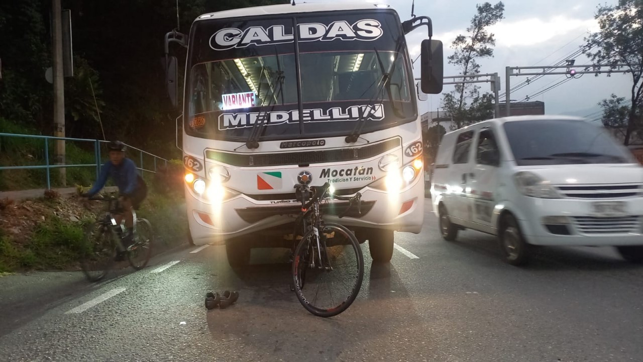 En la madrugada de este viernes (3 de marzo) un ciclista se llevó tremendo susto cuando estaba haciendo su rutina, un bus casi lo atropella por la Autopista a la altura del municipio de La Estrella, Antioquia.