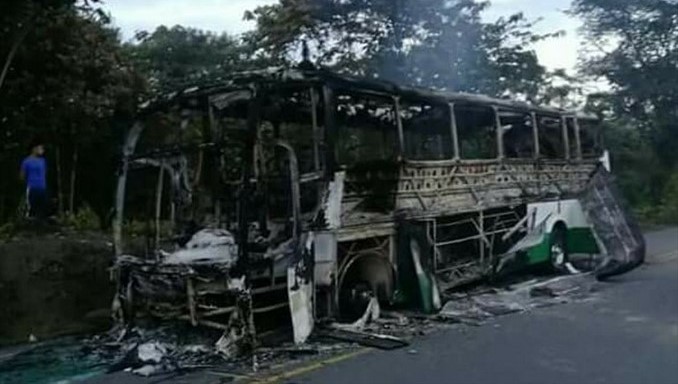 En la vía que comunica a la ciudad de Pasto con Tumaco, a la altura del corregimiento de la Guayacana, un grupo de doce personas encapuchadas prendió fuego a un bus, luego de ordenarle parar.