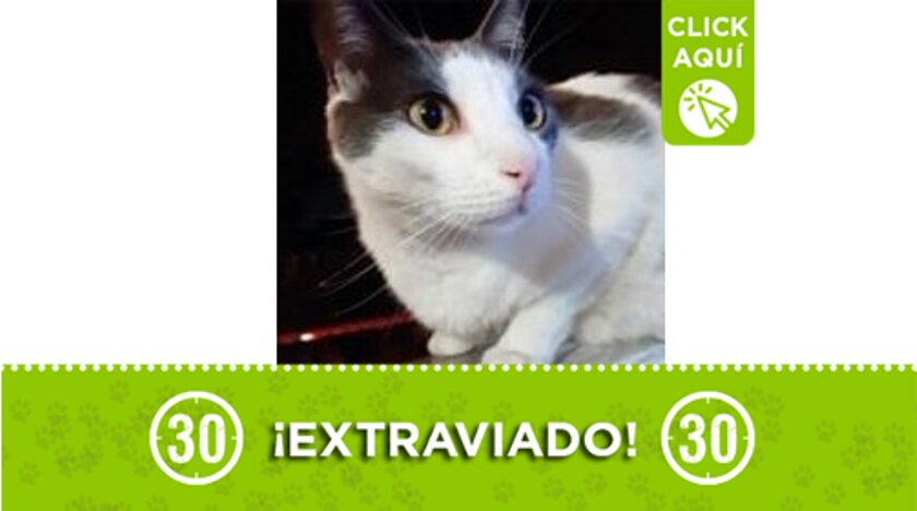 Minuto30.com .- Un gatico blanco con manchas grises se perdió el pasado lunes 6 de abril. Si alguien lo ha visto comunicarse a los teléfonos de contacto.