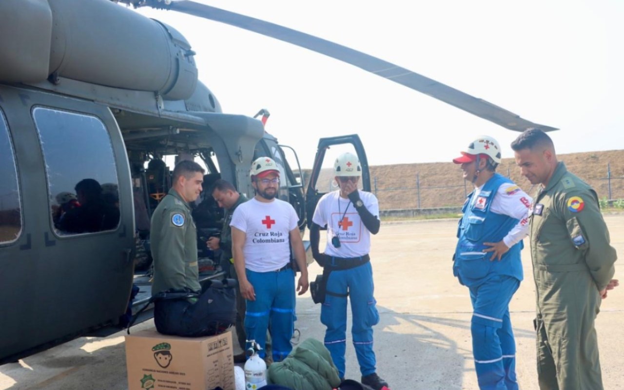 De igual manera, el Comando Aéreo de Combate No. 5 desplegó desde Rionegro, Antioquia, un helicóptero UH-60 Black Hawk, más conocido como helicóptero “Ángel”, con tripulación altamente entrenada para este tipo de operaciones, para la inserción de los rescatistas de la Cruz Roja a esta zona inhóspita, con el objetivo de apoyar en tierra la misión de búsqueda y salvamento.