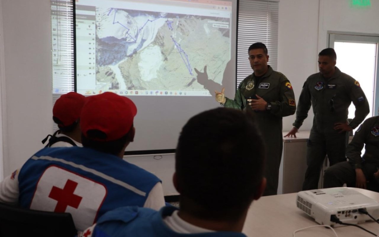 La zona en la que están los parapentistas tiene una elevación de 17.000 pies, aunado a las condiciones topográficas y fuertes vientos, haciendo de esta una misión de alta complejidad. Foto: Oficina Comunicación Publica CACOM 3