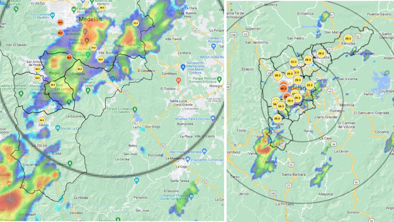 “Se espera que incidan con moderadas a altas intensidades sobre los barrios La Milagrosa, Loreto y El Poblado, al menos en los próximos 20 minutos”, detallaron funcionarios del Siata.