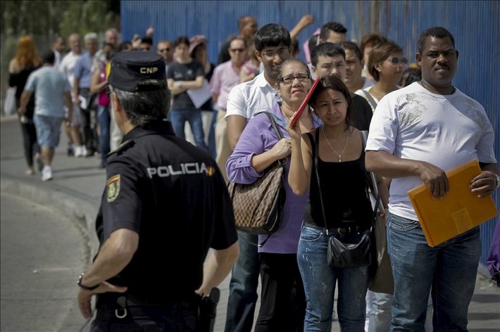 Las autorizaciones de trabajo a extranjeros concedidas en España durante los dos primeros meses de 2013 cayeron un 33,5 % respecto a igual período del año anterior.