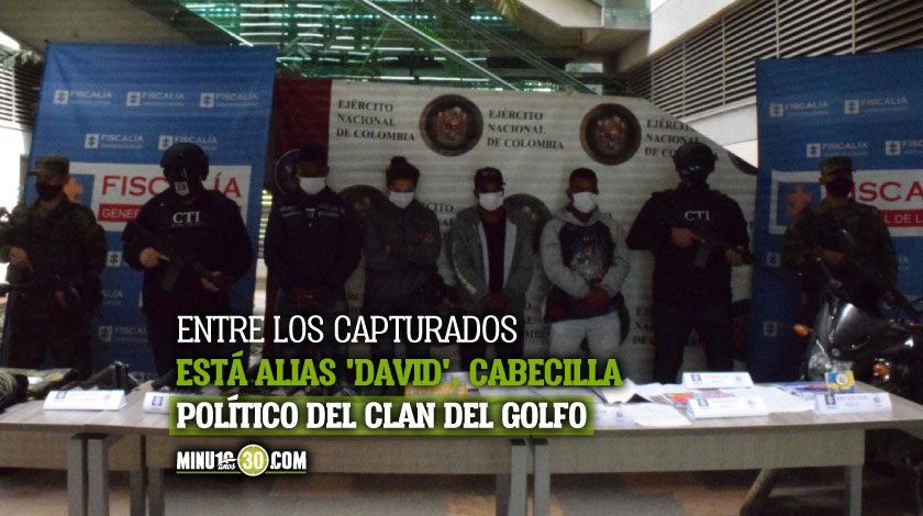 Según el Ejército, entre los capturados se encuentra alias ‘David’, cabecilla político de esa estructura criminal en los municipios de Caicedo, Santa Fe de Antioquia y Anzá. Este sujeto es desmovilizado del Bloque Elmer Cárdenas de las extintas AUC y sobre él hay tres órdenes de captura por homicidio, concierto para delinquir, y fabricación, tráfico y porte de armas de fuego.