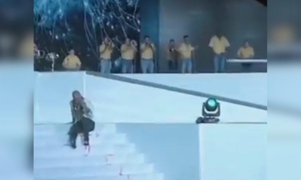 Aunque su cuerpo cayó, el artista, profesionalmente se puso de pie y no dejó que su presentación se cayera, puso a todos a bailar y cantar sus éxitos musicales.