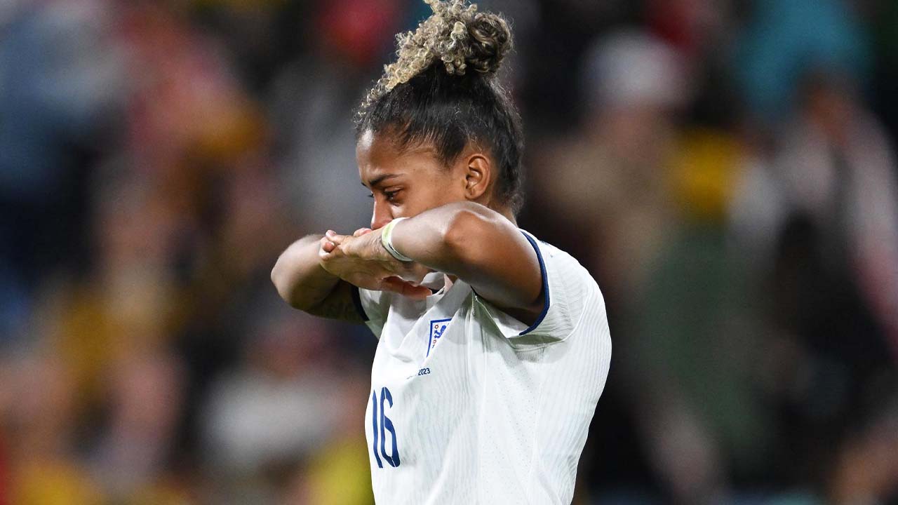 Jorelyn Carabalí, defensa de la selección nacional femenina de fútbol de Colombia, fue registrada el pasado 12 de agosto, al lamentar la eliminación del equipo suramericano del Mundial FIFA 2023 de Australia y Nueva Zelanda, al final de un partido de los cuartos de final en el que las cafeteras cayeron 2-1 con Inglaterra, en Sydney (Australia). EFE/Dean Lewins
