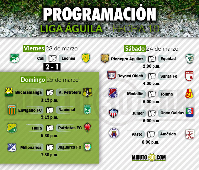 Deportivo Cali derrotó 2-1 a Leones de Itagüí en la apertura de la décima fecha de la Liga Águila I-2018, que también tendrá programación entre sábado y domingo.
