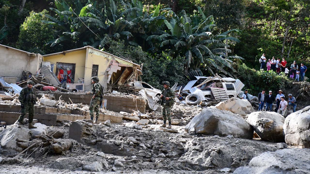 Según los datos de la Alcaldía de Quetame hay 20 viviendas desaparecidas bajo el lodo que dejó la avalancha y el alud también arrasó un puente, lo que provocó el cierre de la carretera que conecta Bogotá con Villavicencio.